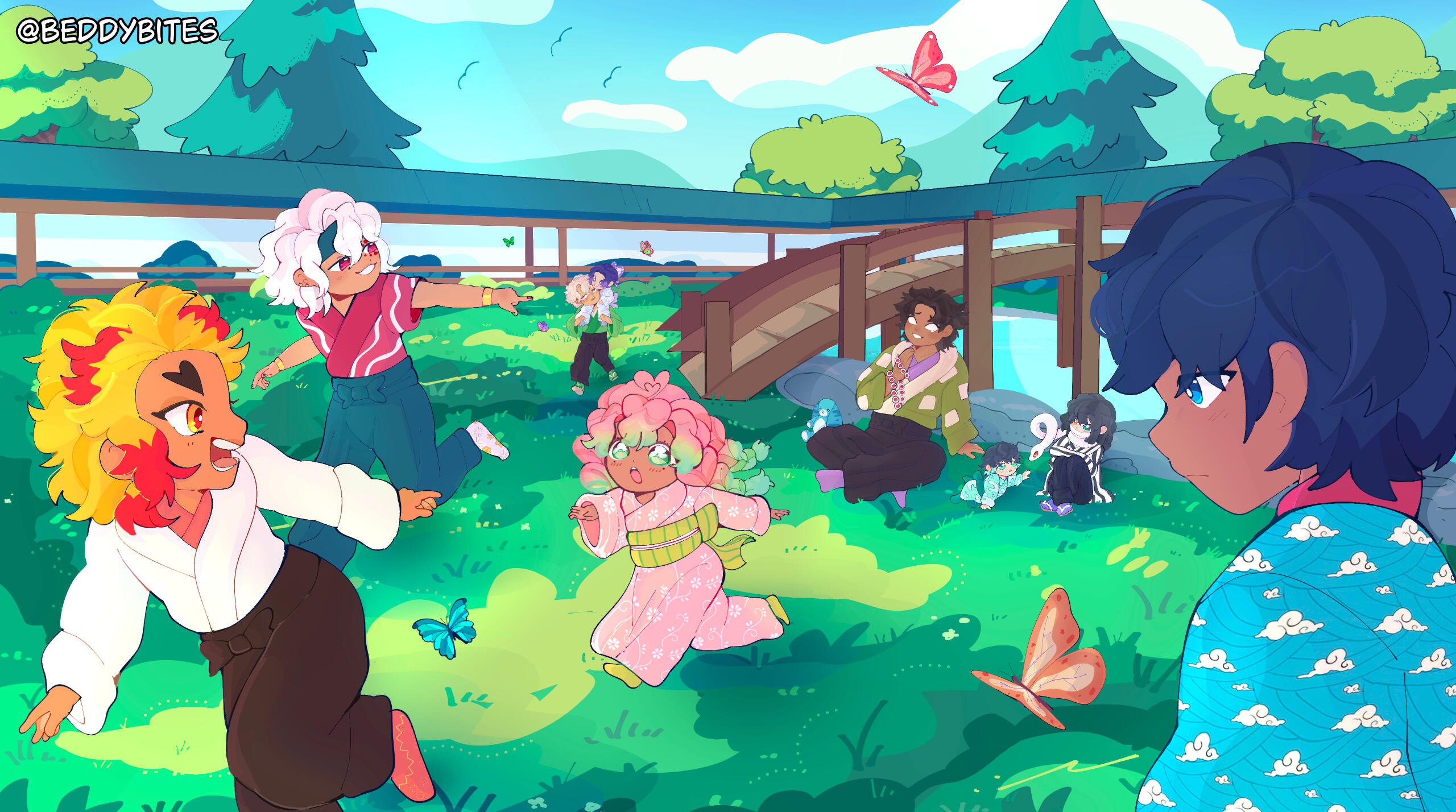 The Pint Sized Pillars | 12 x 6 in (2024) Fanart of characters from the series Demon Slayer distributed as a poster Clip Studio Paint