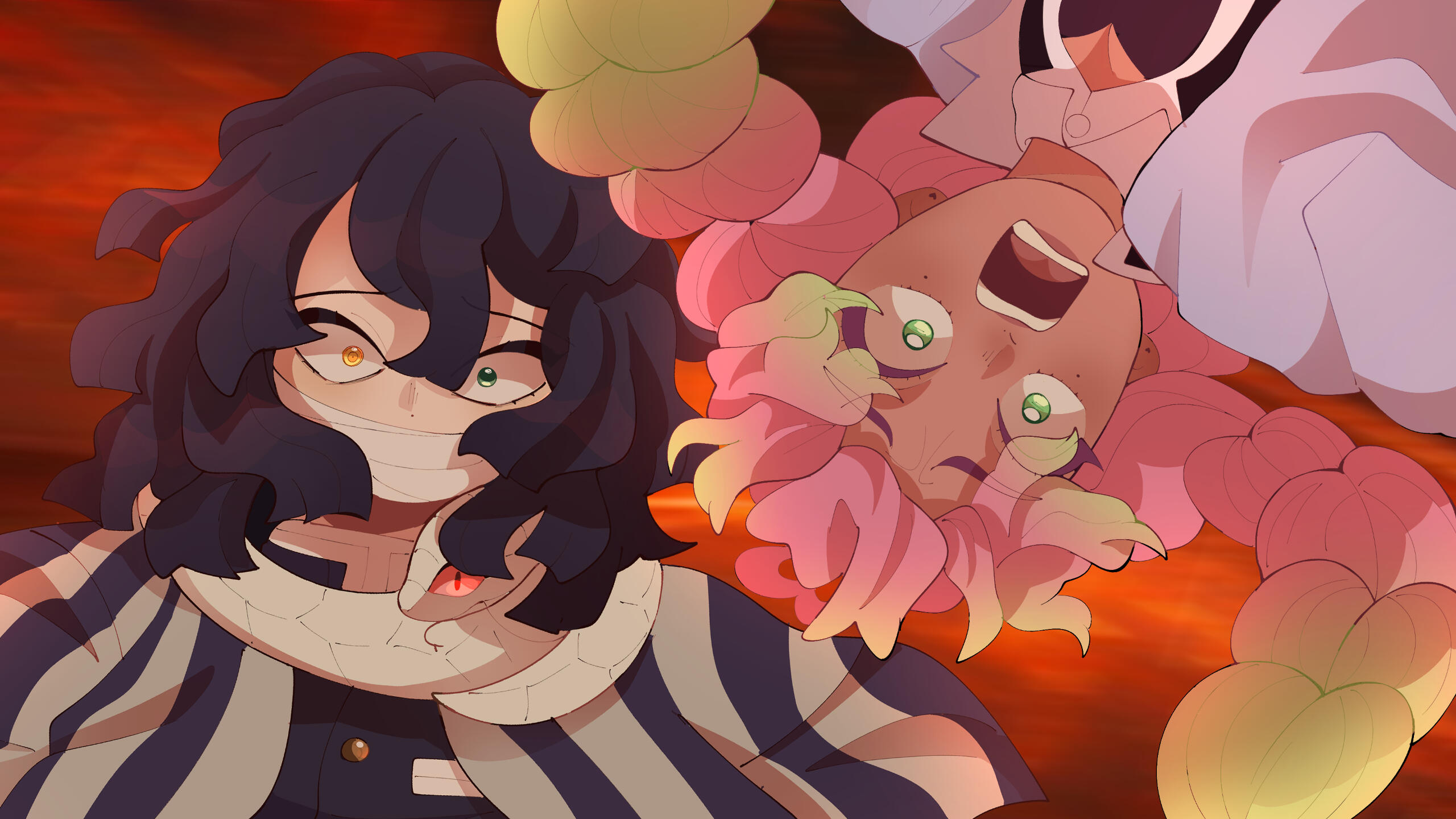 Obamitsu | 11 x 9 in (2025) As a trade with another artist, I was tasked with drawing a couple from Demon Slayer: Kimetsu Gakuen Clip Studio Paint
