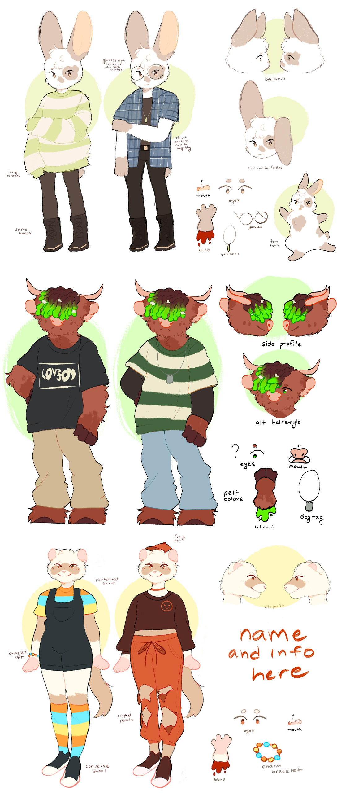 Children Book Character Designs | 5 x 12 in (2022) These designs were created as commissions from separate clients. Each design was based on the concept of a children's book with anthromorphic animals! Clip Studio Paint